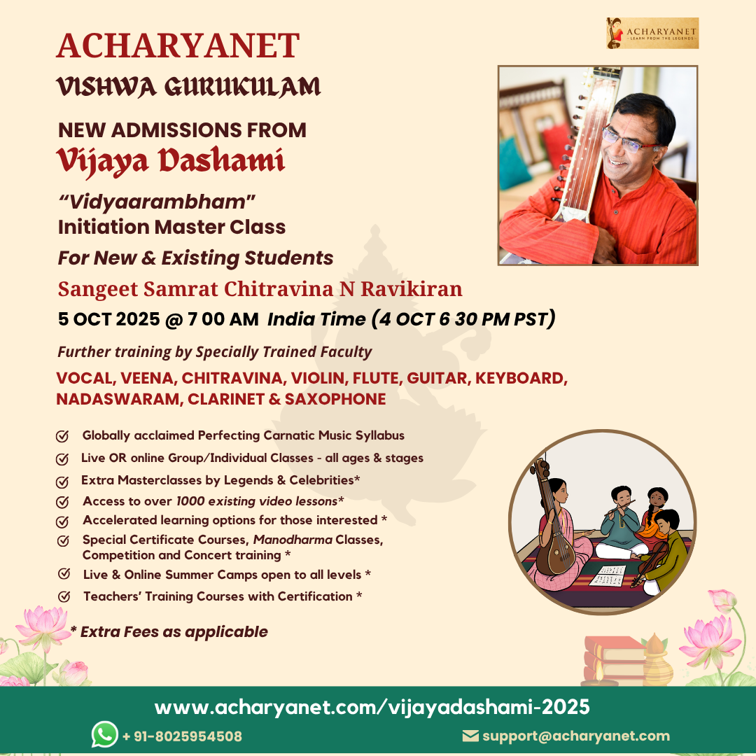 "Invaluable resource of high-level Carnatic Music lessons for every student in any part of the world"